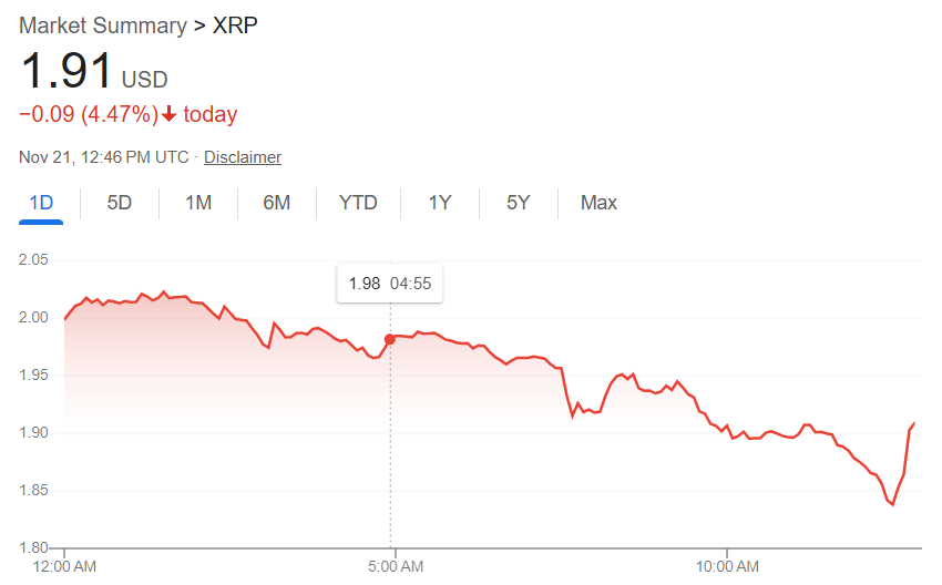- XRP는 강한 매도세로 2달러 아래로 떨어지며 단기 바닥 형성이 불확실한 흐름이 이어지고 있다.