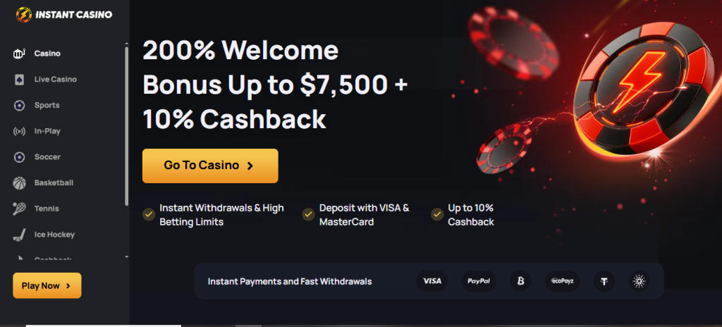 يعتبر Instant Casino من أبرز المنصات للعب السريع وسهولة الاستخدام، مع مكتبة واسعة من ألعاب الطاولة والسلوت. يتميز