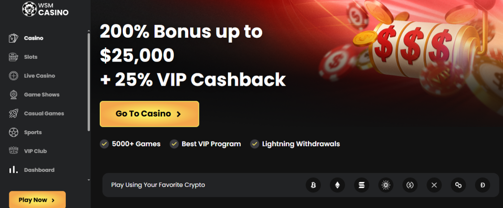 يتميز WSM Casino بواجهة ملونة وسهلة، مع مكافآت واضحة وسهلة الاستخدام، ما يجعله مناسبًا للمبتدئين.