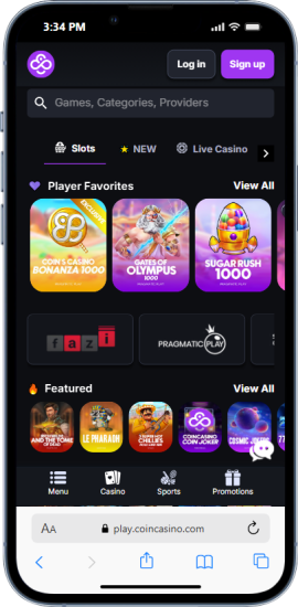اختر واحداً من الكازينوهات اون لاين الخمسة في القائمة فكلها تقبل اللاعبين اللبنانيين. اختر الكازينو الذي تفضله، وانقر على الرابط الخاص به. في هذا المثال، سنختار CoinCasino.