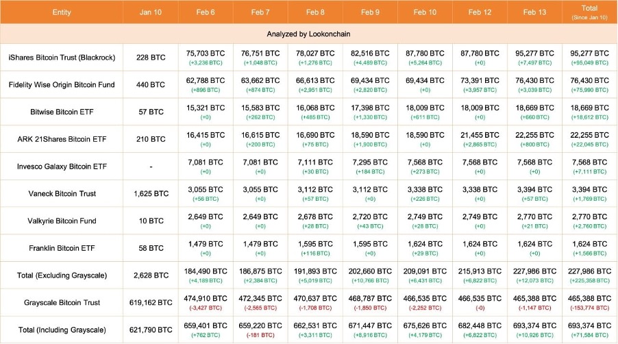 As the spot Bitcoin exchange-traded fund (ETF) hype continues to take center stage in the crypto news scene, issuers have reportedly added 12.073 BTC to their holdings as institutional interest goes through the roof.