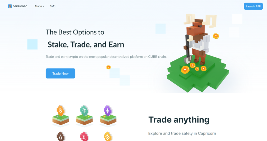 Capricorn Finance will provide multiple on-chain services for all crypto players on Cube Chain. Capricorn users could trade CRC-20 tokens, provide liquidity to earn trading fees, stake LP tokens and Capricorn’s governance token CORN, and purchase new project tokens on this platform.