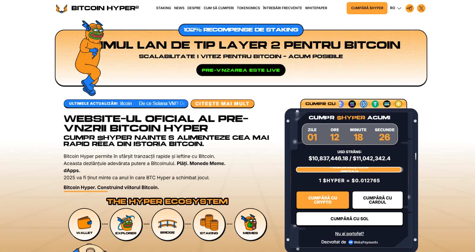 Răspunsul este da. Bitcoin Hyper ($HYPER) este o soluție Layer-2 de nouă generație care promite viteză superioară, scalabilitate sporită și programabilitate DeFi pentru dezvoltatori. Proiectul a depășit deja 24,4 milioane USD în faza de pre-vânzare, atrăgând atenția lumii cripto ca una dintre cele mai promițătoare criptomonede de cumpărat acum.