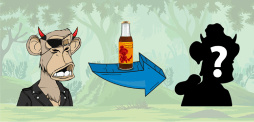 At the same time, Dough-Boy collaborated with an NFT collector to combine his own Gummy Villain with the collector’s BAYC #8155, traded earlier for 106ETH (over $320,000 USD), to create “Bored Ape Gummy”.