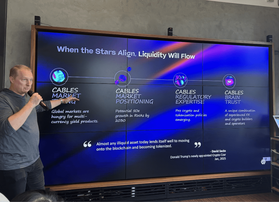 Midweek, Co-Founder Matt Miller took the stage to break down the core problems Cables is solving with RWA-backed LSTs and our Perp DEX. The crowd was engaged—people are starting to see the real potential of bringing yield-generating assets onchain and giving them utility in trading and liquidity markets.