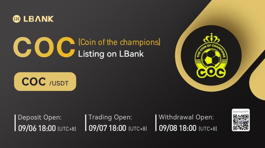 INTERNET CITY, DUBAI, Sep. 7, 2022 – LBank Exchange, a global digital asset trading platform, has listed Coin of Champions (COC) on September 7, 2022. For all users of LBank Exchange, the COC/USDT trading pair is now officially available for trading.