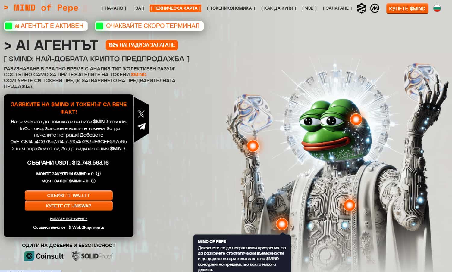 Mind of Pepe не е просто още един meme-token – това е проект, който съчетава интернет културата с нови технологии и силата на общността, предлагайки огромен вирусен потенциал през 2025 г.