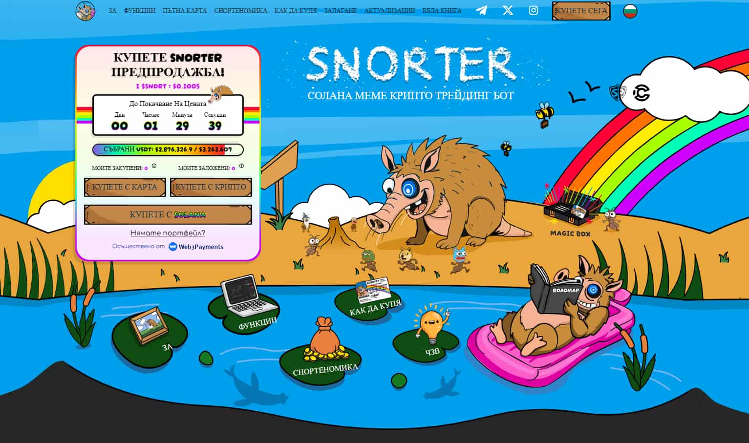 Snorter (SNORT) е нов криптопроект, който съчетава meme културата с реална полезност. Благодарение на вирусния растеж на токена и активната ангажираност на общността, проектът бързо привлече вниманието на инвеститорите. Въпреки че се намира в ранен етап, Snorter вече е постигнал впечатляваща пазарна капитализация и изгражда екосистема, ориентирана към Web3.