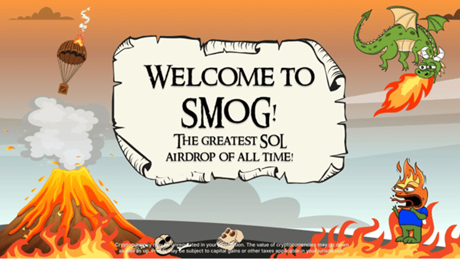A meme coin that could very quickly become one of the biggest gainers and potentially pump its price up to 100x is the young Smog Token ($SMOG). Apart from being set for explosive price pumps, this meme coin is quite popular among crypto whales because it enables participation in “the greatest Solana airdrop of all time”, and allows users to win great prizes.