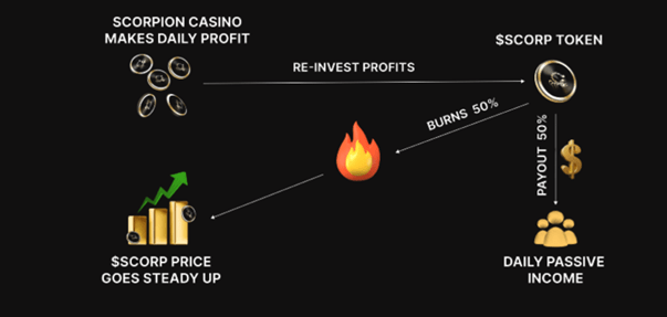Well, that sounds too good to be true in the crypto market. But the reward system is genuine. The project has a two-fold system in place to sustain the value of $SCORP in the open market. As part of this, a share of the profit generated from the gaming ecosystem is set aside. Half of this fund goes to rewarding stakers. And the other goes to a burning protocol.