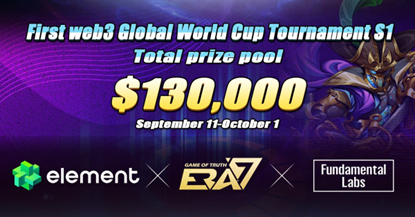 Era7: Game of Truth, a BNB Chain TOP gamefi project, launched the first NFT TCG World Cup Tournament on September 11. The tournament has attracted continuous attention from partners in multiple fields of the blockchain industry. Fundamental Labs, a globally renowned crypto venture capital firm in the web3.0 field, and Element, the world’s first multi-chain aggregated NFT marketplace, will co-sponsor the Season One Era7 World Cup Tournament (The WCT S1) prize pool and work together with Era7 to build a global EsportsFi tournament platform on Web3.0.