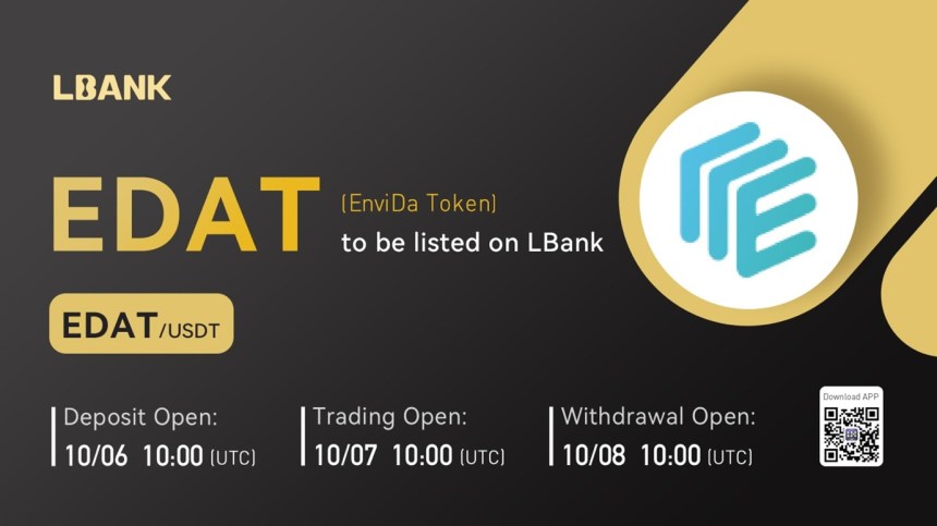 INTERNET CITY, DUBAI, Oct. 7, 2022 – LBank Exchange, a global digital asset trading platform,has listed EnviDa (EDAT) on October 7, 2022. For all users of LBank Exchange, the EDAT/USDT trading pair is now officially available for trading.