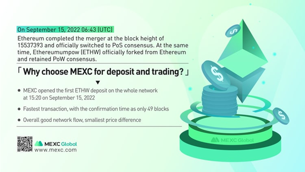 In fact, MEXC is not only the fastest platform to open ETHW deposits within a single day but also the first to announce its support for the Ethereum 2.0 mainnet Merge and the first to list Ethereum’s potential forked chain tokens.