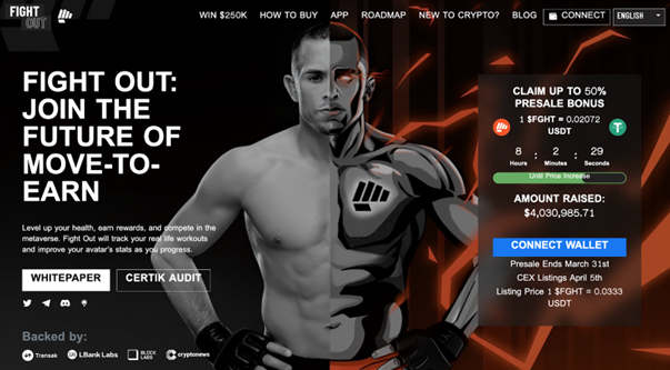 The presale of the trending move-to-earn project Fight Out has crossed the $4M mark. The investor rush to the event has increased over the week to take advantage of the early-stage discounts and bonuses.