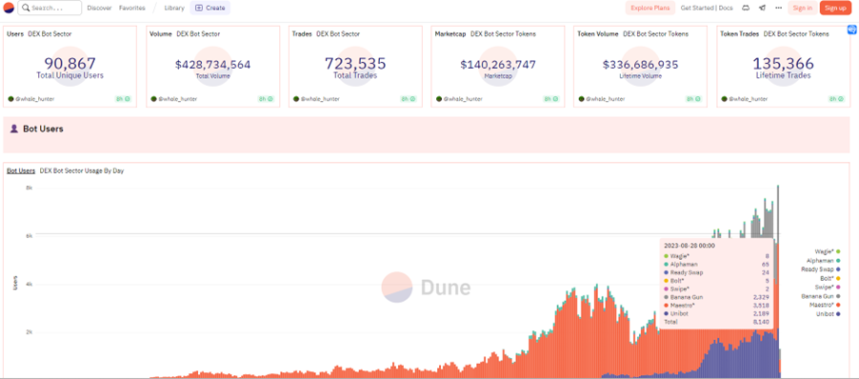 Despite uncertainty in the market, a new narrative of Telegram bots and GambleFi has caught the attention of crypto degens in the market. In particular, GambleFi platforms like RollBit, with their potent real yield capabilities, have become the recent focal points in the market. Their performance on the secondary market has been stellar, drawing widespread attention from both capital and trading enthusiasts. Even Binance Research released a dedicated report on Telegram bots. In addition, according to Dune data, the trading volume of Telegram Bots has exceeded 400 million USD with almost 100,000 users.