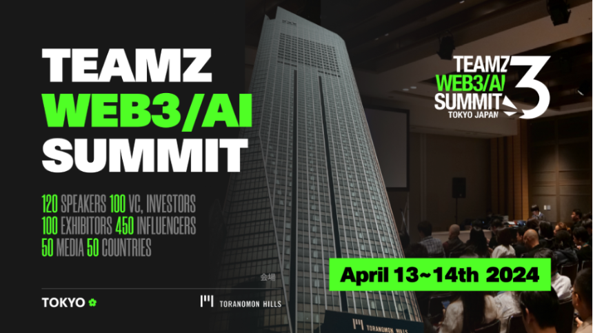 The TEAMZ WEB3 / AI SUMMIT 2024, Japan’s premier Web3 and AI conferences, is scheduled for April 13th and 14th, at Toranomon Hills!