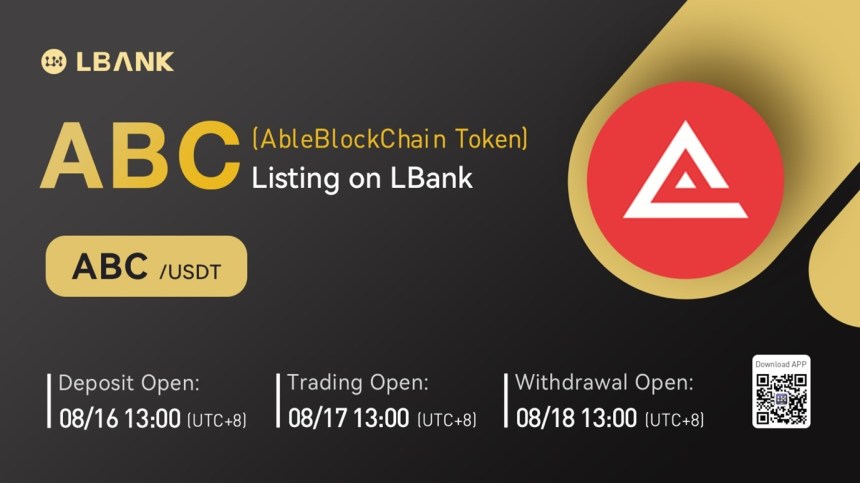 INTERNET CITY, DUBAI, Aug. 15, 2022 – LBank Exchange, a global digital asset trading platform, will list AbleBlockChain Token (ABC) on August 17, 2022. For all users of LBank Exchange, the ABC/USDT trading pair will be officially available for trading at 13:00 (UTC+8) on August 17, 2022.