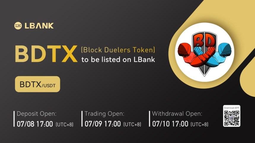 INTERNET CITY, DUBAI, Jul. 8, 2022 – LBank Exchange, a global digital asset trading platform, will list Block Duelers (BDTX) on July 9, 2022. For all users of LBank Exchange, the BDTX/USDT trading pair is now officially available for trading.