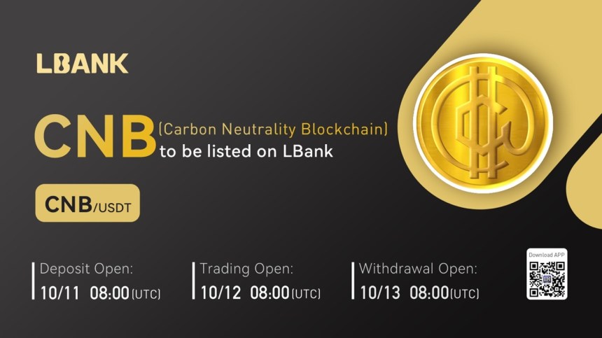 INTERNET CITY, DUBAI, Oct. 10, 2022 – LBank Exchange, a global digital asset trading platform, will list Carbon Neutrality Blockchain (CNB) on October 12, 2022. For all users of LBank Exchange, the CNB/USDT trading pair will be officially available for trading at 8:00 UTC on October 12, 2022.