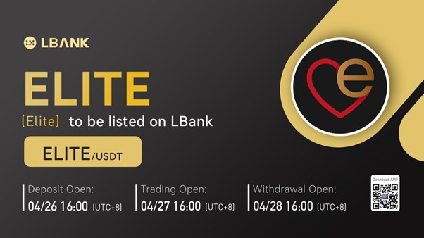 INTERNET CITY, DUBAI, Apr. 25, 2022 – LBank Exchange, a global digital asset trading platform, will list Elite (ELITE) on April 27, 2022. For all users of LBank Exchange, the ELITE/USDT trading pair will be officially available for trading at 16:00 (UTC+8) on April 27, 2022.