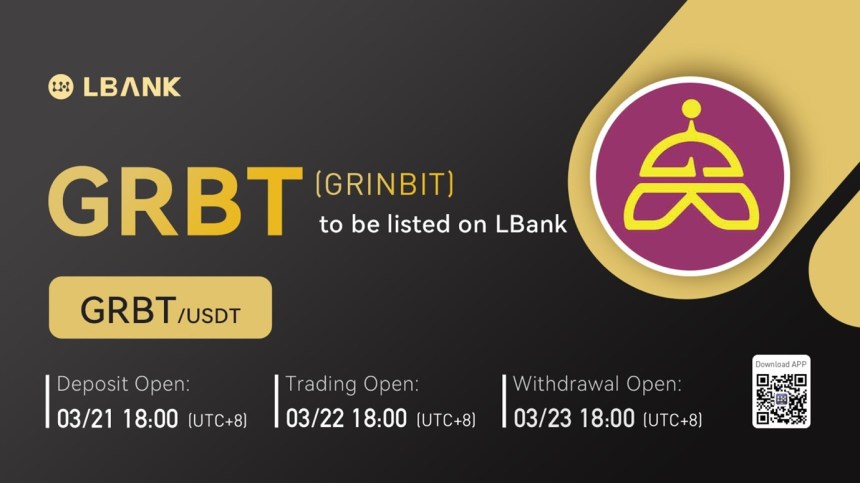 INTERNET CITY, DUBAI, Mar. 18, 2022 – LBank Exchange, a global digital asset trading platform, will list GRINBIT (GRBT) on March 22, 2022. For all users of LBank Exchange, the GRBT/USDT trading pair will be officially available for trading at 18:00 (UTC+8) on March 22, 2022.