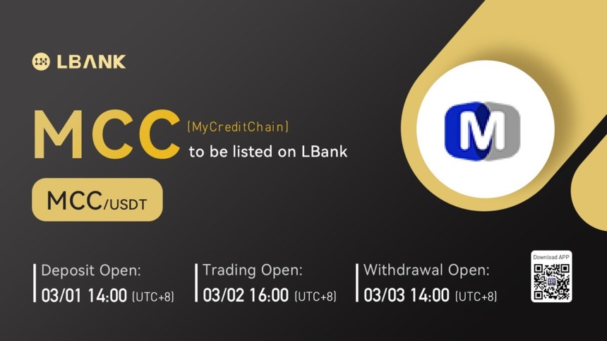 INTERNET CITY, DUBAI, Feb. 24, 2022 – LBank Exchange, a global digital asset trading platform, will list MyCreditChain (MCC) on March 2, 2022. For all users of LBank Exchange, the MCC/USDT trading pair will be officially available for trading at 16:00 (UTC+8) on March 2, 2022.