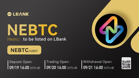INTERNET CITY, DUBAI, Sep. 16, 2022 – LBank Exchange, a global digital asset trading platform, will list NEBTC on September 20, 2022. For all users of LBank Exchange, the NEBTC/USDT trading pair will be officially available for trading at 16:00 (UTC+8) on September 20, 2022.