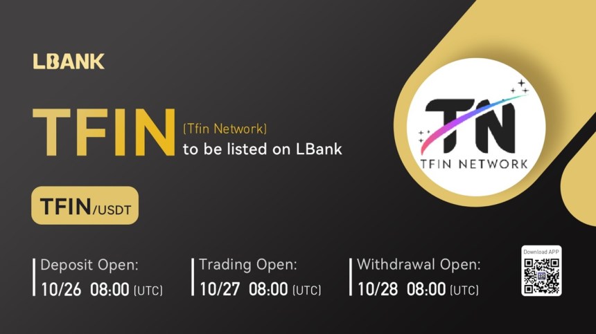 INTERNET CITY, DUBAI, Oct. 25, 2022 – LBank Exchange, a global digital asset trading platform, will list TFIN NETWORK (TFIN) on October 27, 2022. For all users of LBank Exchange, the TFIN/USDT trading pair will be officially available for trading at 8:00 UTC on October 27, 2022.