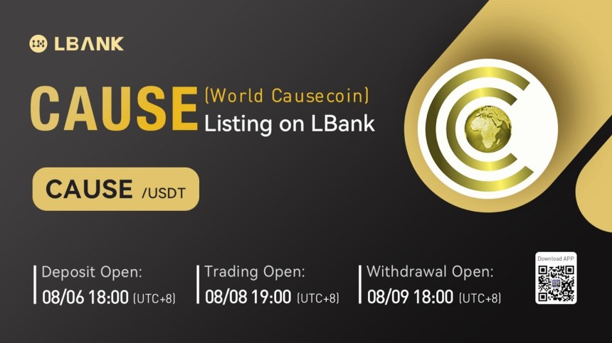INTERNET CITY, DUBAI, Aug. 4, 2022 – LBank Exchange, a global digital asset trading platform, will list World Causecoin (CAUSE) on August 8, 2022. For all users of LBank Exchange, the CAUSE/USDT trading pair will be officially available for trading at 19:00 (UTC+8) on August 8, 2022.