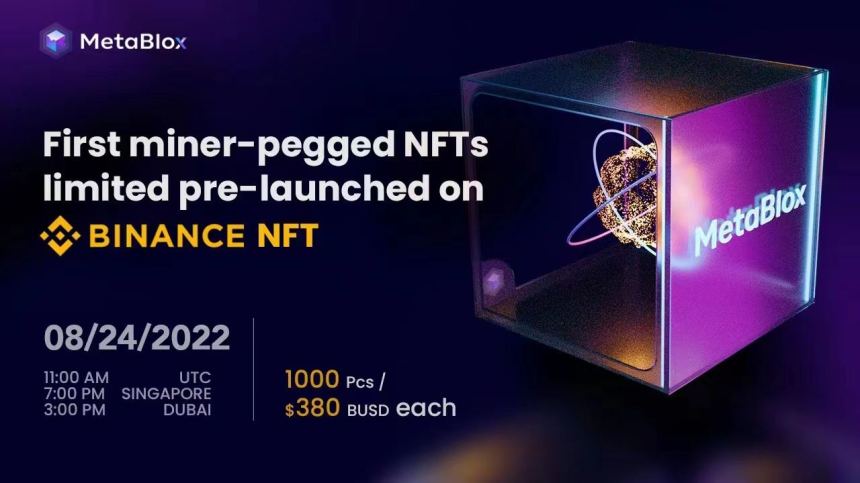The first ever miner-pegged NFT with cloud mining capabilities will be pre-launched by MetaBlox on August 24th, 2022 on Binance NFT. MetaBlox is a leading project in the Decentralized Wireless Network (DWN) and Decentralized ID (DID) sectors, and is building important infrastructure for Web3. The MetaBlox NFT is a crypto mining NFT: each will link to a miner that provides the general public with free Wi-Fi at particular locations. The miners generate passive income (MBLX tokens) for the NFT holders.