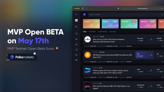Interested parties who now wish to test the Polkamarkets Open Beta, where there are several open markets in crypto prices and Esports, can do so at: app.polkamarkets.com
