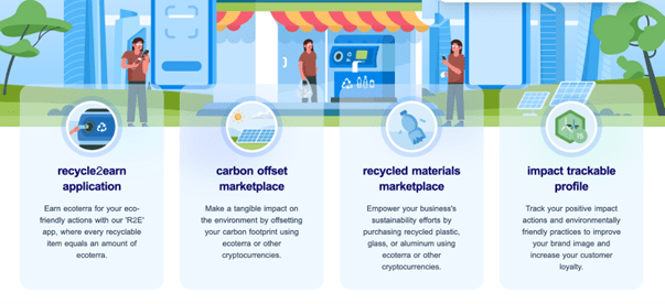 As a result, each of these user groups will gain access to different benefits and solutions, contributing to the creation of a more sustainable future. The comprehensive approach towards recycling, the circular economy, and carbon offsetting are rooted in blockchain technology. It can be rightly said that the ecosystem owes its feasibility to the transparency and security provided by Web 3.0.