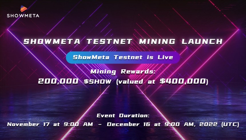 On 15th November 2022, ShowMeta announced to start Testnet mining soon.