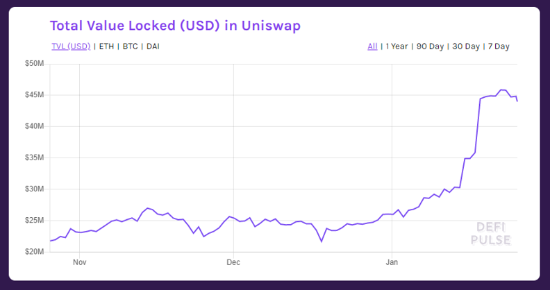 Ethereum staking on Uniswap has gone parabolic already (source)
