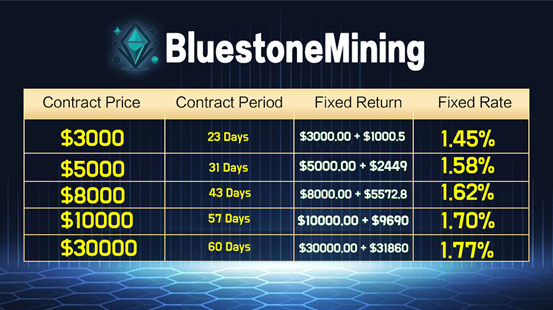 As the digital currency market continues to grow, more and more investors are focusing on digital currency mining. However, traditional digital currency mining methods often require investors to buy expensive equipment and pay high electricity bills, which is impractical for most investors. BluestoneMining new energy cloud mining provides a more convenient, low-cost one-click digital currency mining method.