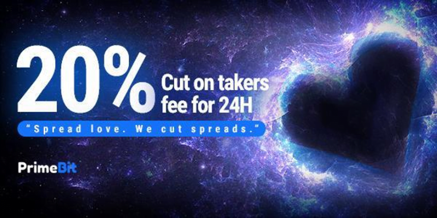 Great news for all cryptocurrency traders. PrimeBit, one of the world’s leading crypto contracts exchange has just come with an outstanding global promo on Valentine’s day. For 24 hours they cut the fees by 20% for all trades made with PrimeBit. Make sure you don’t miss this unique opportunity to trade. The promotion starts February 14, at 00:00:01 UTC, and lasts until 23:59:59 the same day.