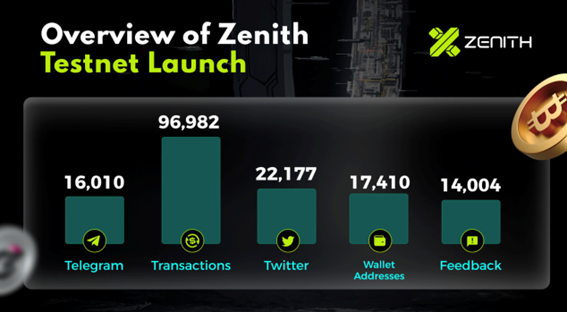 During its testnet period, Zenith attracted over 38,000 followers on social media, saw nearly 100,000 transactions, accrued more than 17,410 wallet addresses and received 14,000 pieces of users’ feedback; which are impressive statistics for a protocol during its testnet period.
