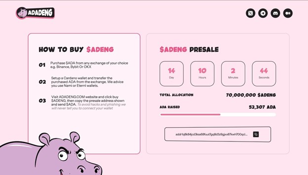 The AdaDeng presale is live and will run until December 20, 2025. It’s worthy to note that over 50,000 $ADA has been raised in just hours of the presale going live.