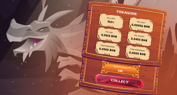After that you have to remember to feed your dragon by buying food so it can grow and bring you profit, creating valuable gold which can be exchanged for BNB or used to buy more food. The more food your dragon has, the more gold it brings in.