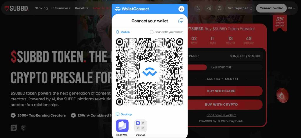 SUBBD($SUBBD)是一個新的預售專案,提供可接觸到擁有2.5億活躍追蹤者的AI創作者平台的機會。投資人可以在上架交易所之前購買$SUBBD,目前預售價格僅為每枚代幣$0.0564。