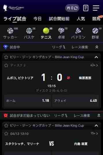 | 4 | テニスの試合を選ぶ: サイト内の「テニス」や「スポーツ」セクションから賭けたい試合を選びます。 |