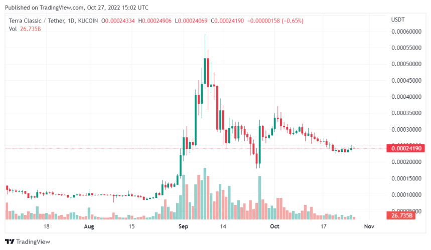 Terra community has adopted the tax burn as a process that facilitates the growth of LUNC price. The mechanism will destroy 10 billion LUNC from the token’s total supply. The new tax burn change took effect on October 19.