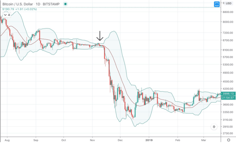 As much as 90% of price action takes place within the bands, so any breakouts and candle closes outside of the bands often results in a reversal.