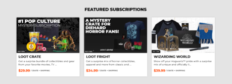 - Loot Crate – Subscription Mystery Boxes with a Curated Selection of Licensed Gaming Merchandise